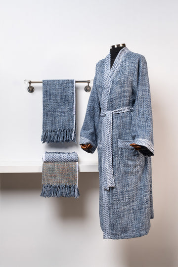 Using 17th century traditional weaving, the fabric is handmade by our master weavers in Bursa, Turkey. Each bathrobe is custom made.